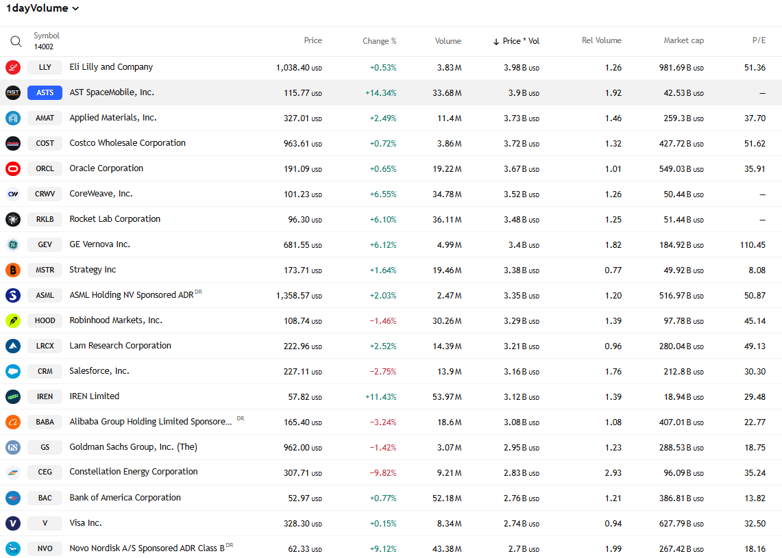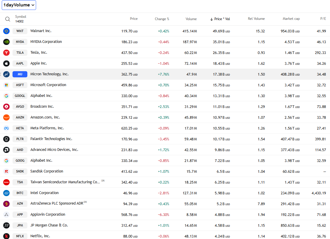 마이크론 급등. 우주항공도 잘나가서 ASTS 폭등.