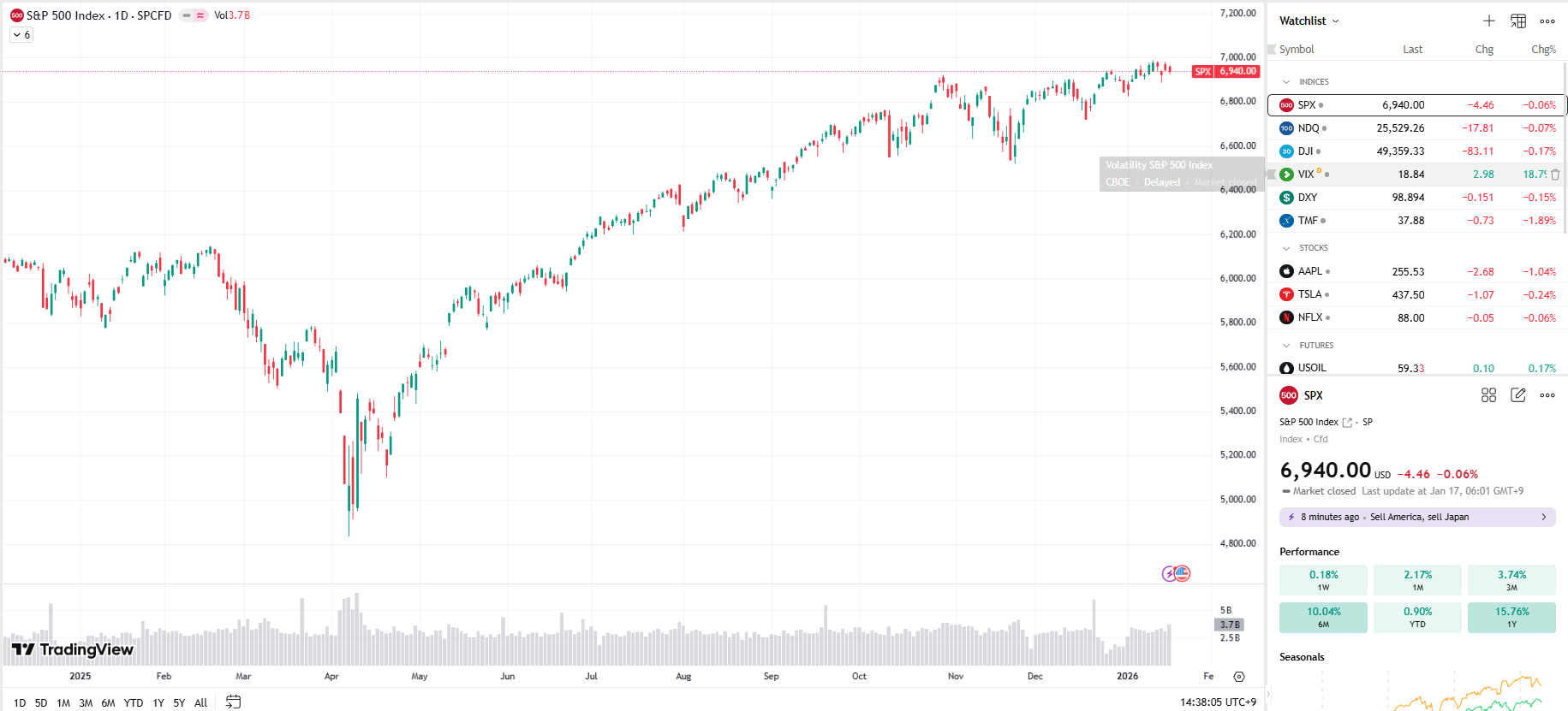 VIX가 18% 이상 올랐다.