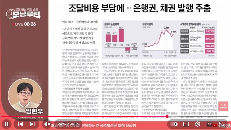 조달 비용 올라가서 채권 안찍는다. 그냥 예금으로 자금땡기는게 유리하다함
