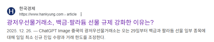 중국이었나? 금속 광물들 무슨 뉴스땜에 투기세력들 금지당해서 빠졌다는거 들은 것 같다.
