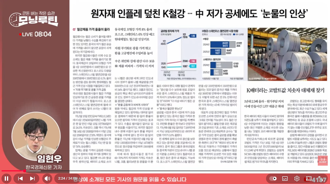원자재 급등으로 힘든 k-철강