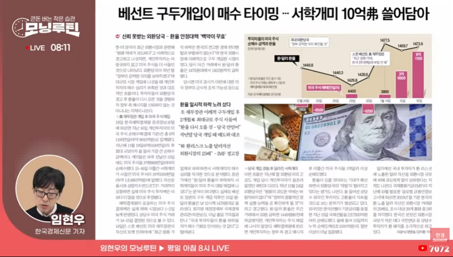 이거 실시간으로 봤었는데, 환율 뚝 떨어졌었음. 근데 그냥 매수 타이밍으로 보고 죄다 주식 샀다함 ㅋㅋㅋㅋㅋ