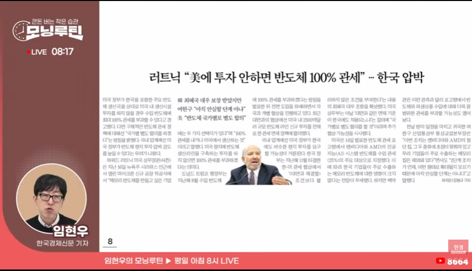 2. 한국, 투자 안하면 반도체 100% 관세 때리겠다
