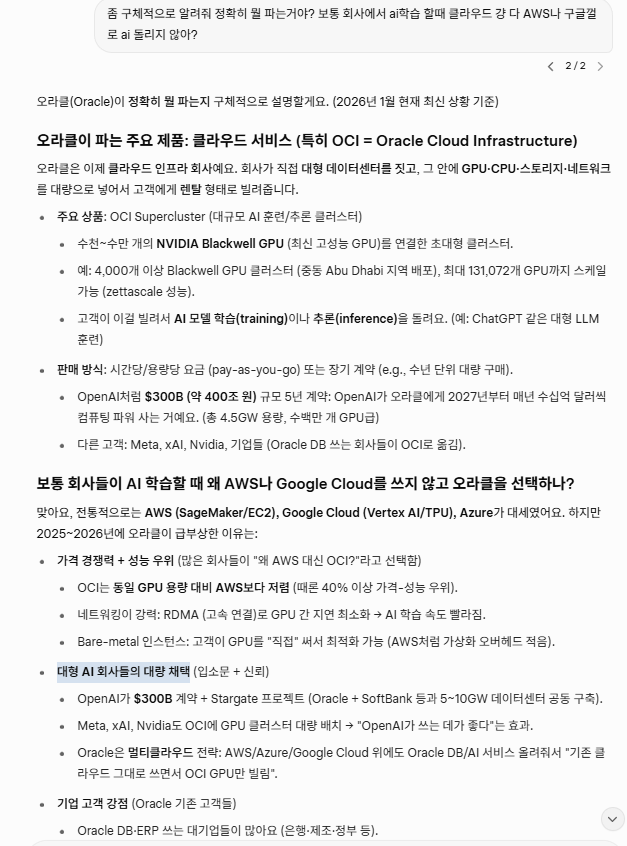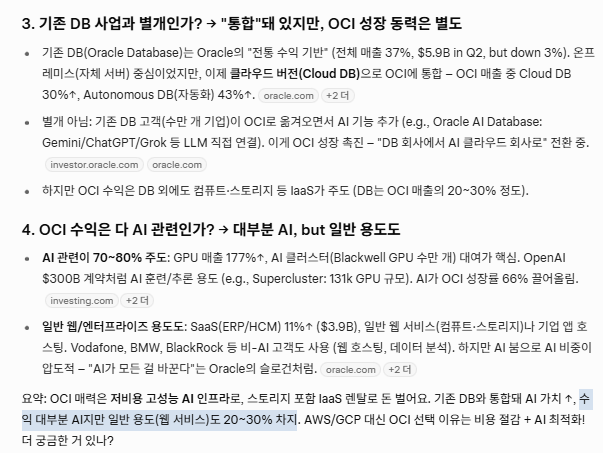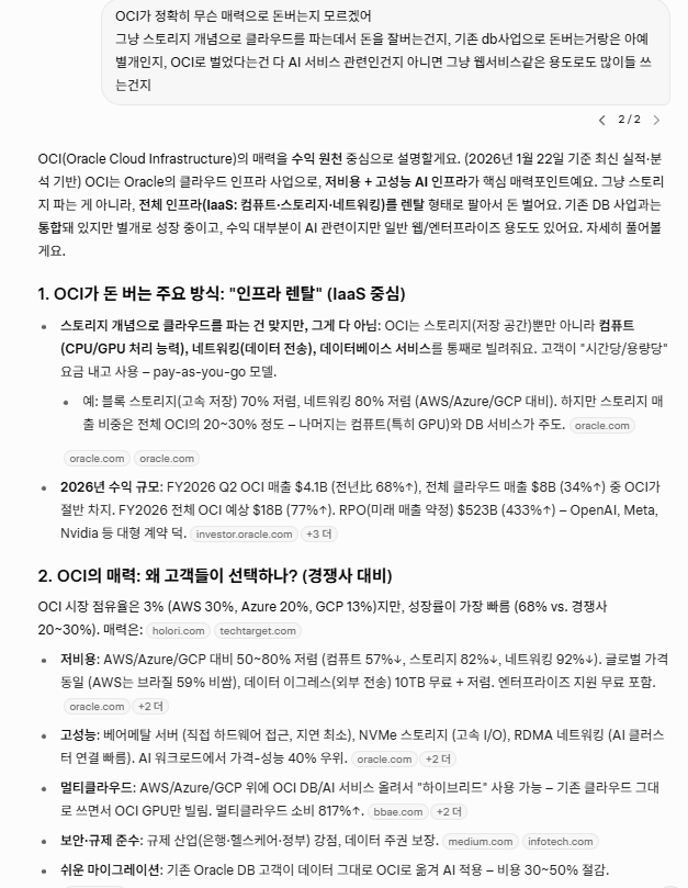 근데 OCI가 성장동력도 크고 이미 매출 비중도 좀 되던데, 내가 oci를 안써봐서 모르겠다. 더 캐물어봄.