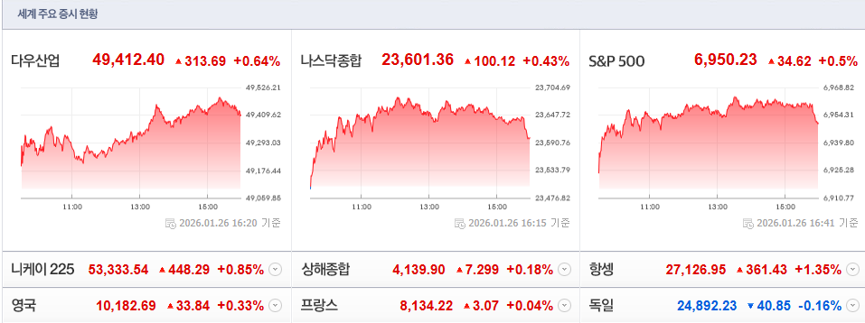 | [국장/미장] 메타 급등!! / 인텔 실적 / 코스피 5천, 그러나 경제성장률은... / 2026-01-23 (0) | 2026.01.23 |